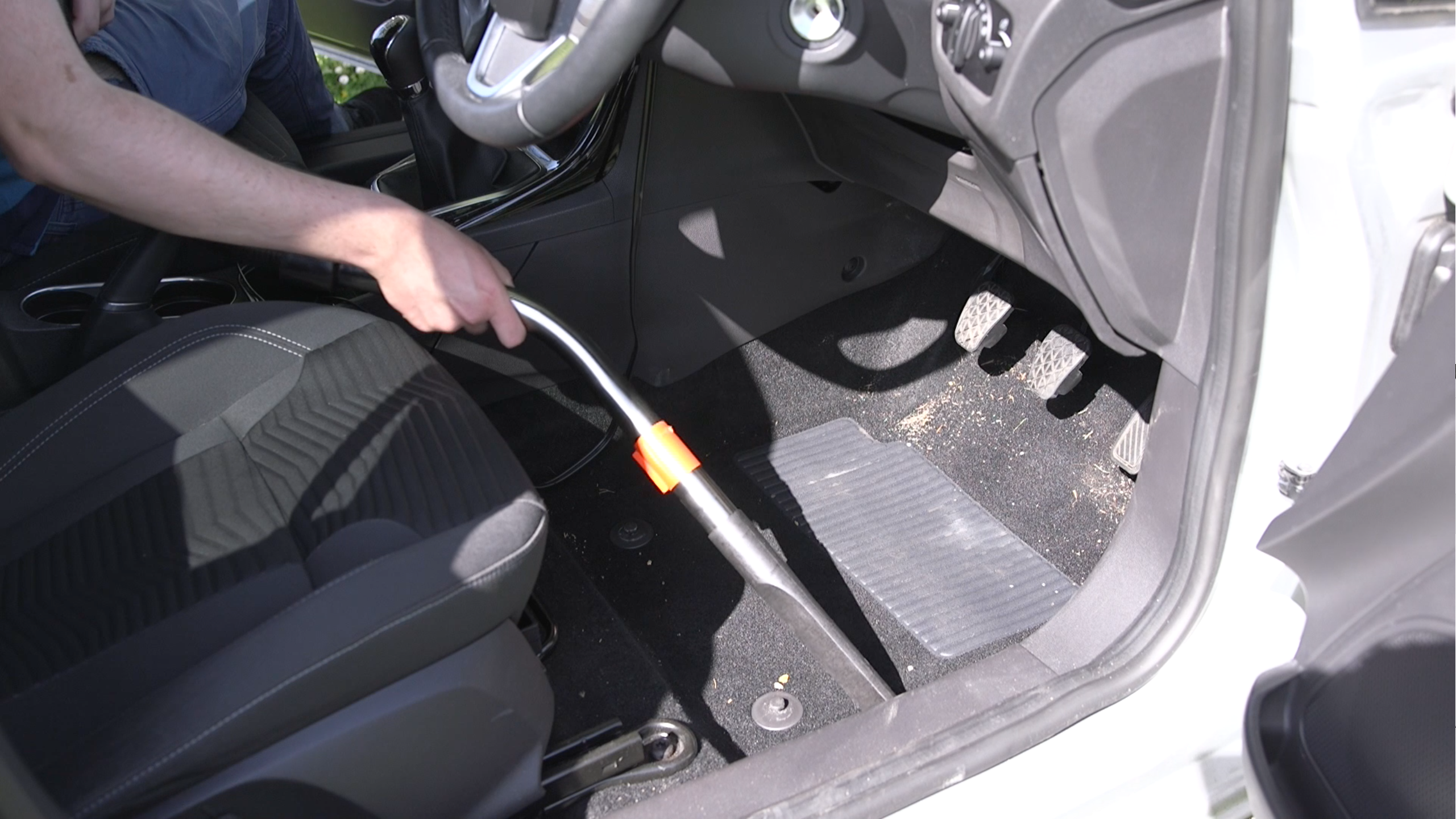 Use the extension nozzle to get down into the creases in your seats, where all manner of grit, grime, hair, sweets and dirt accumulates. When you’ve done that, hoover over the seats and finally give them a sponge down with hot water.